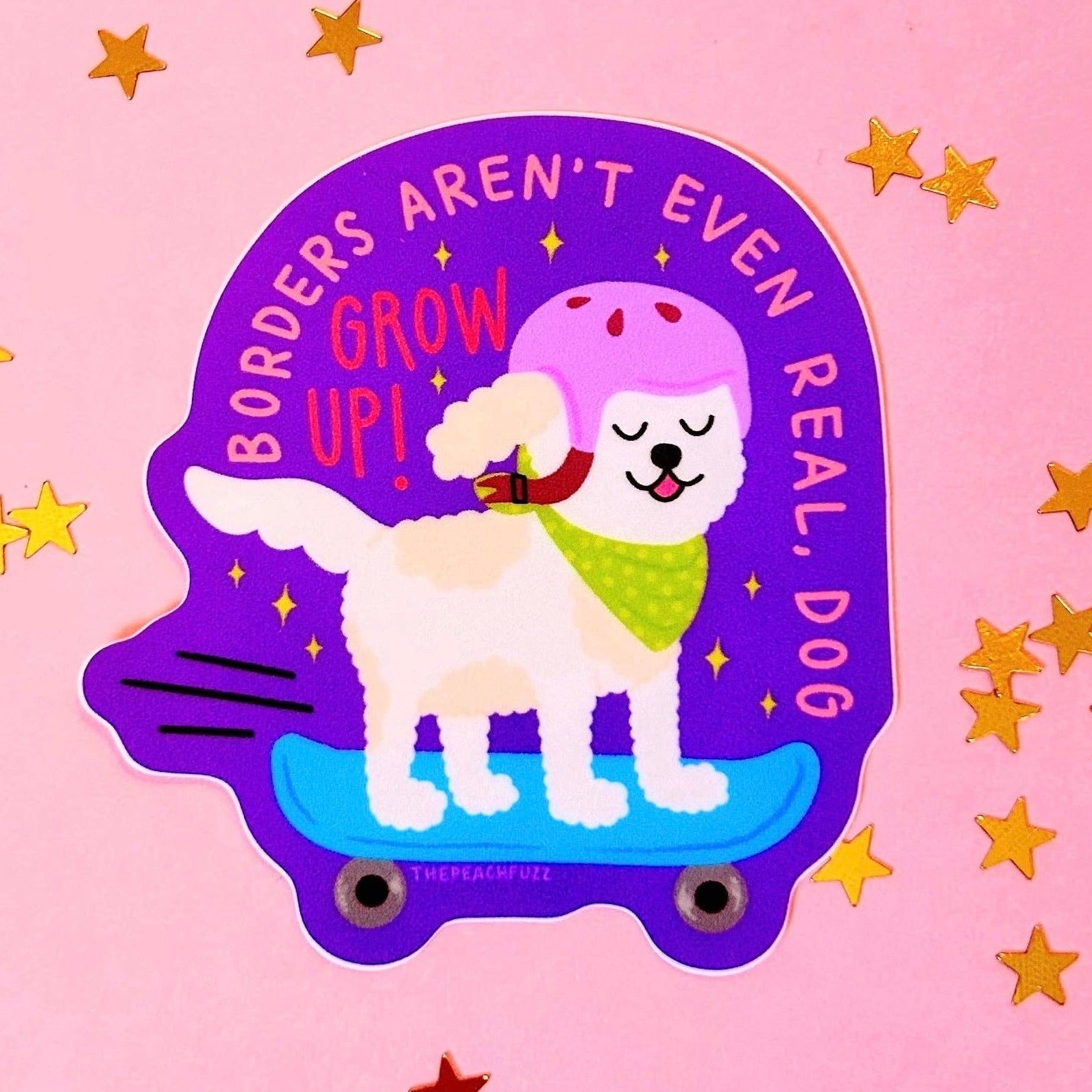 Oh you are worried about people crossing borders? The thing we made up? Measures 2.5 x 2.5 inches. Matte finish. ✿ fully waterproof ✿ Feature UV screening to protect against weather and sunlight ✿ 2-4 year minimum outdoor life