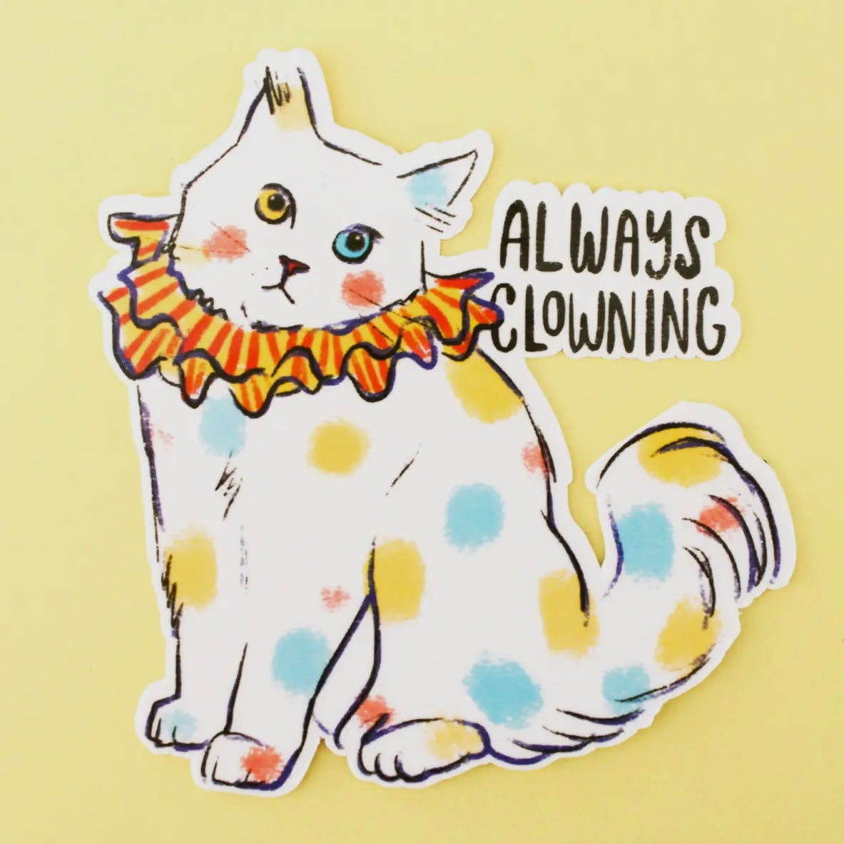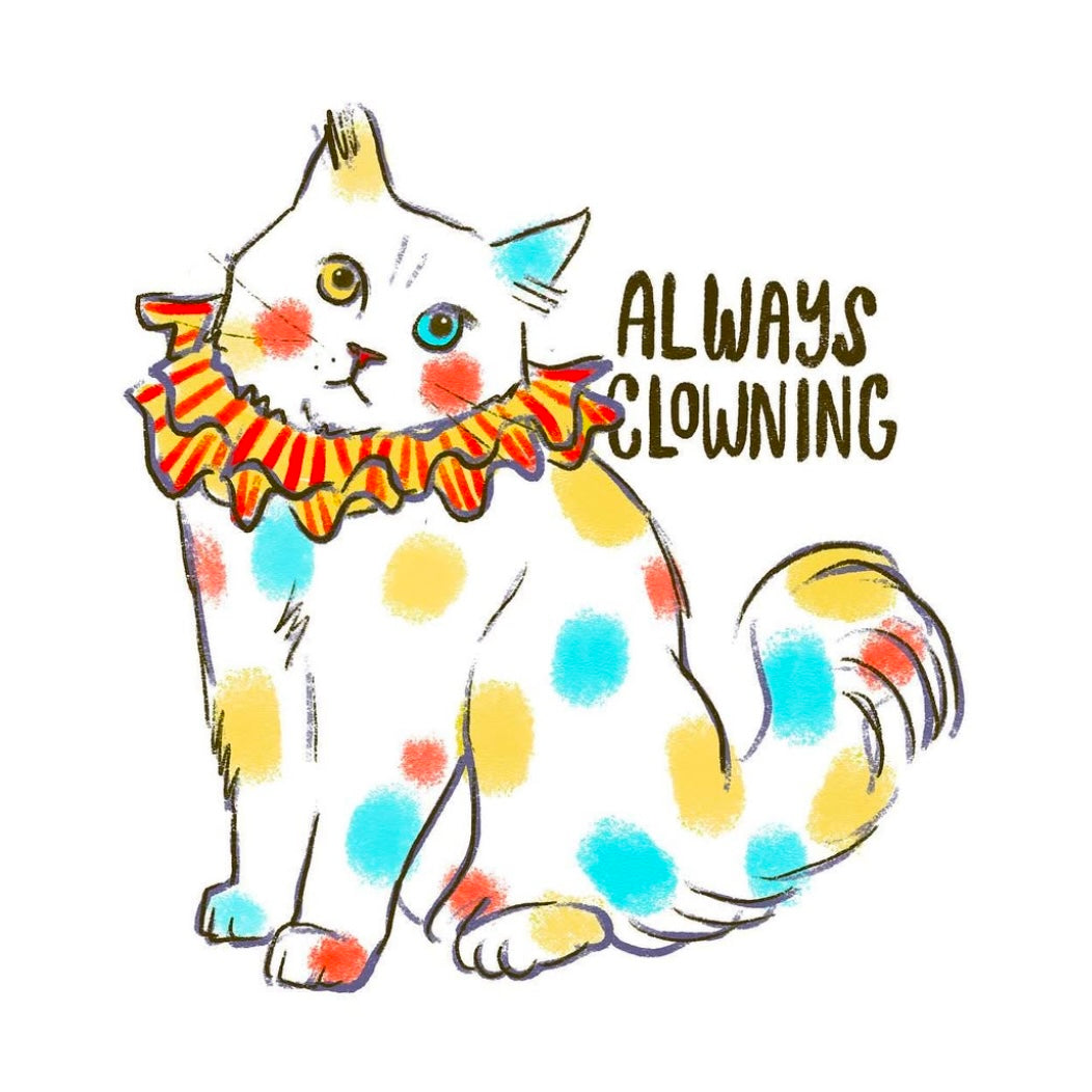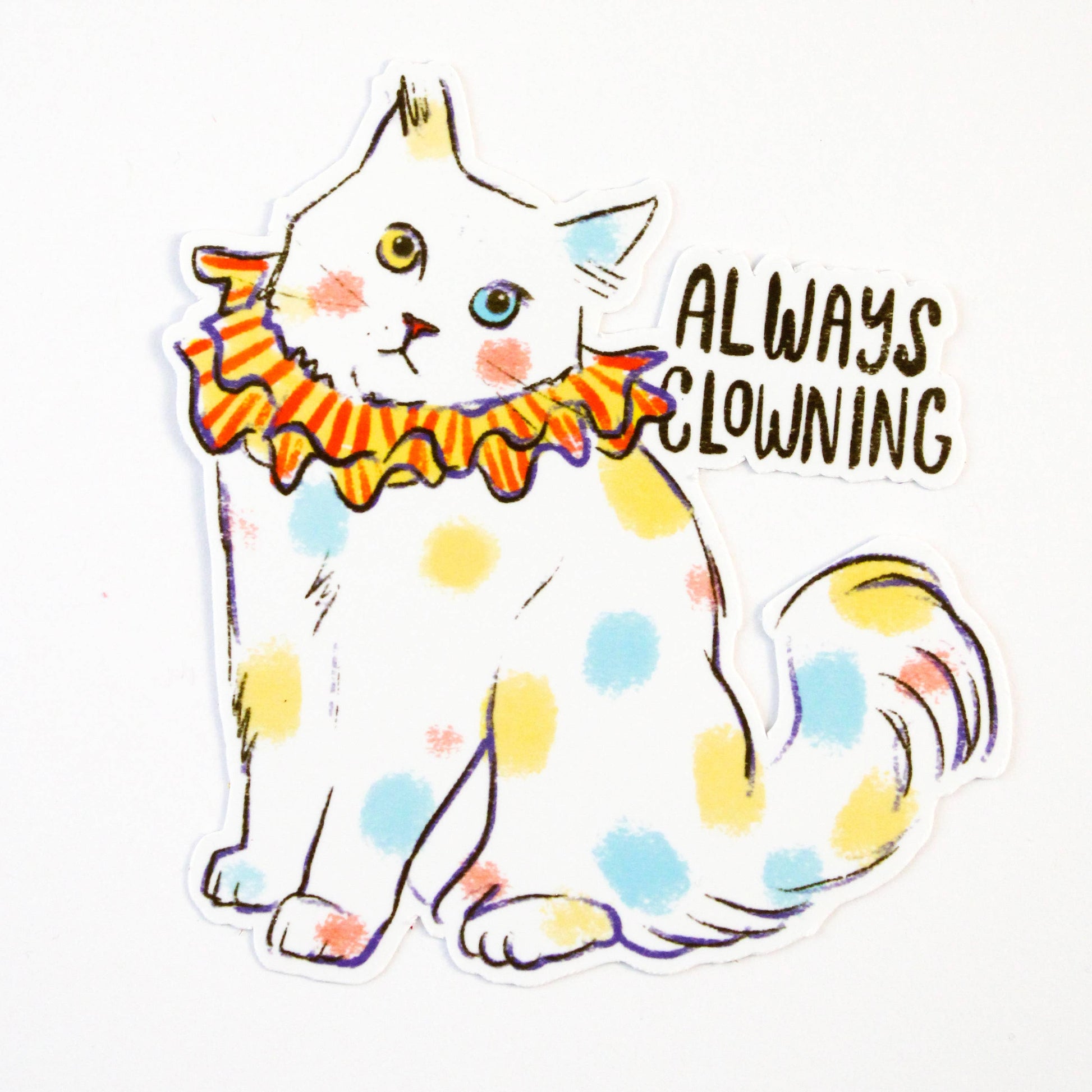 3” vintyl waterproof sticker • always clowning kitty cat