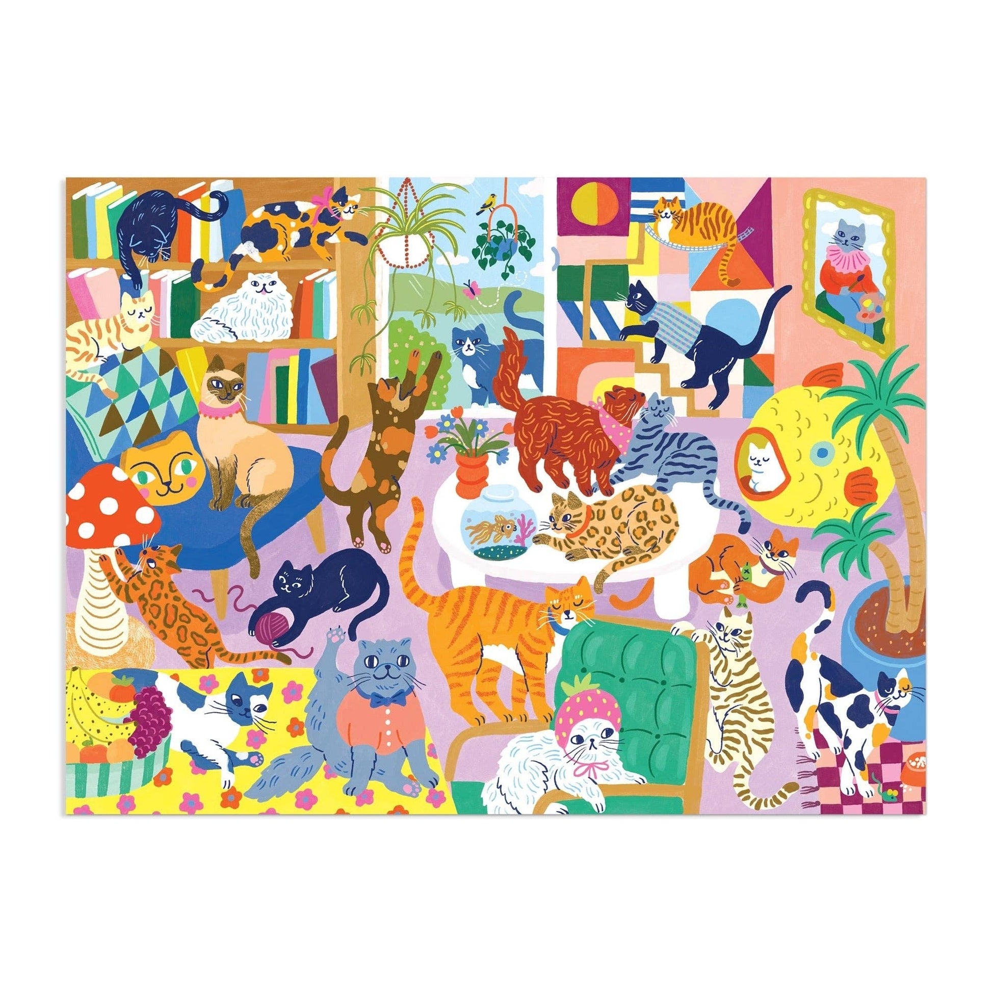 Settle in for hours of cozy puzzle fun with this delightful 1000-piece family puzzle featuring Sarah Walsh's whimsical cat club illustration. Perfect for puzzle nights, rainy days, or quality time together, this charming scene invites everyone to gather around and piece together the purr-fect picture. With vibrant colors and adorable feline characters, it's a feel-good challenge that brings smiles to faces of all ages. Frame it when finished—it's too cute not to display!