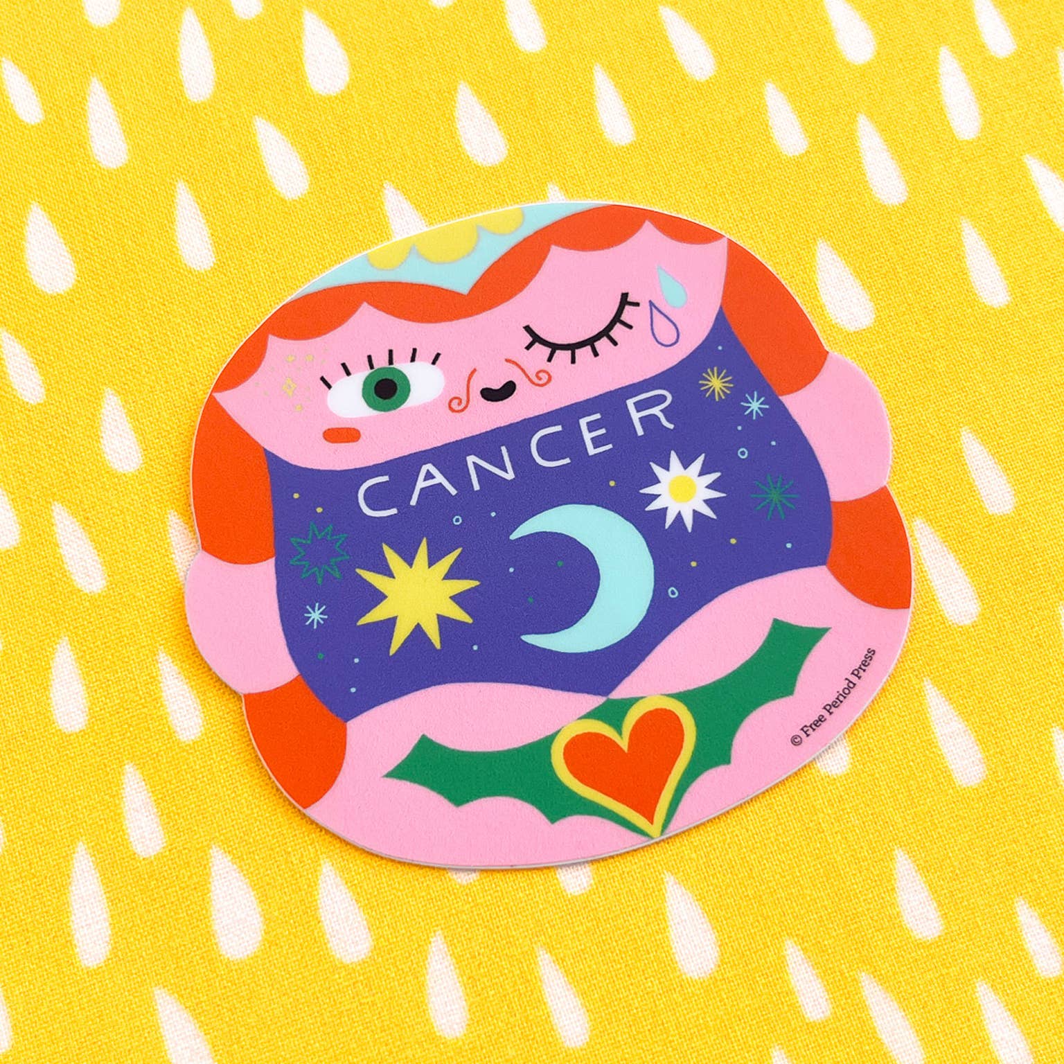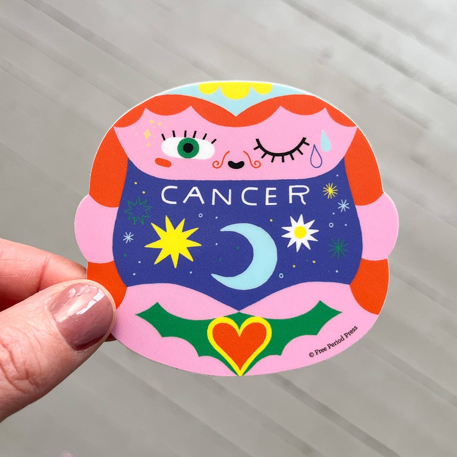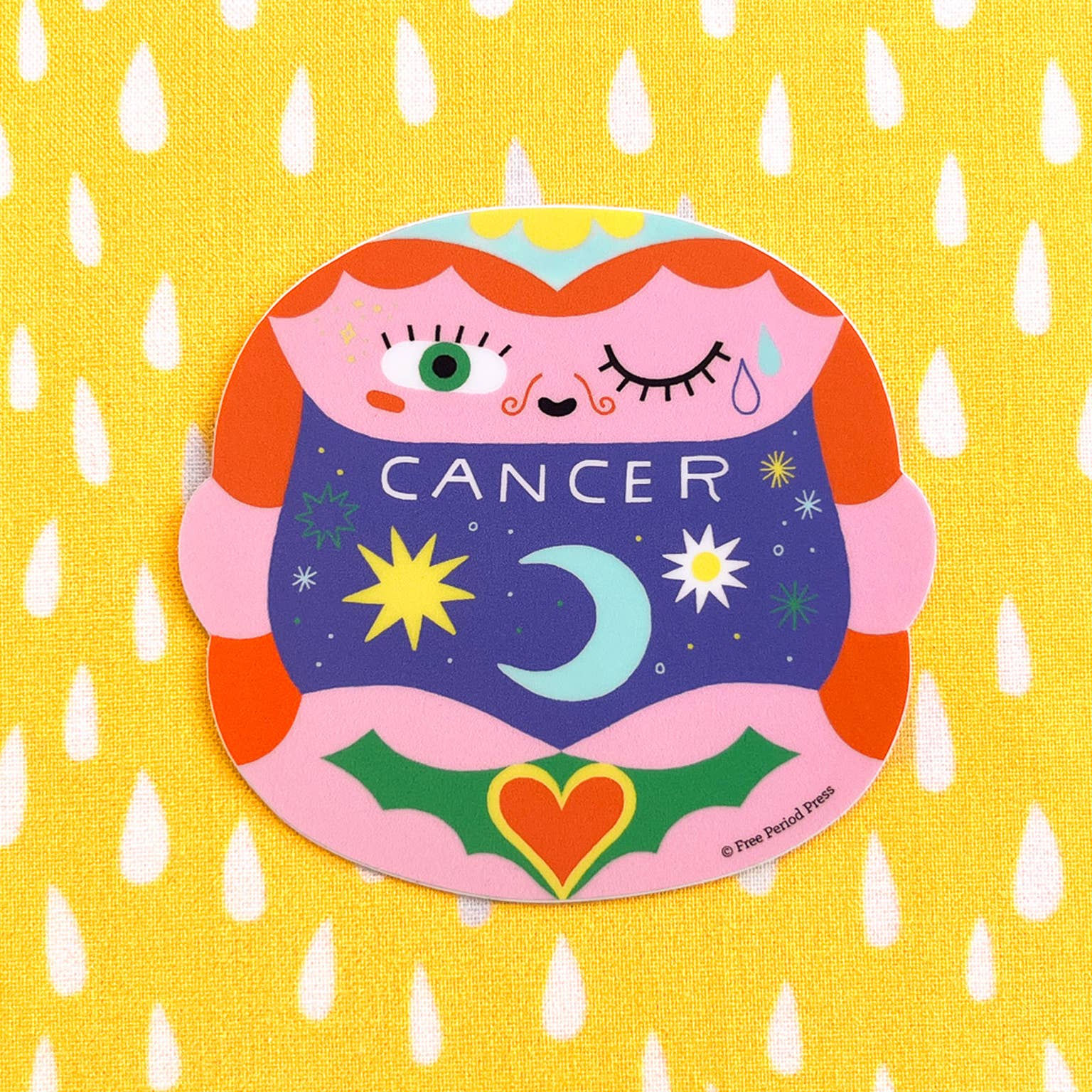 This dreamy Cancer sticker is like a little hug for your heart—moons, stars, & all the cozy feels you thrive on. 🌙 This vinyl sticker is perfect for your laptop, water bottle, Macbook, notebook, planner, computer, journal, skateboard, bike, car, cell phone, folder, locker, Yeti cup, or Hydroflask. Really, it'll look great anywhere! This sticker makes a great gift! Product Details: Size: about 2.93" x 2.71" Designed by: Bug Robbins in Cleveland, Ohio