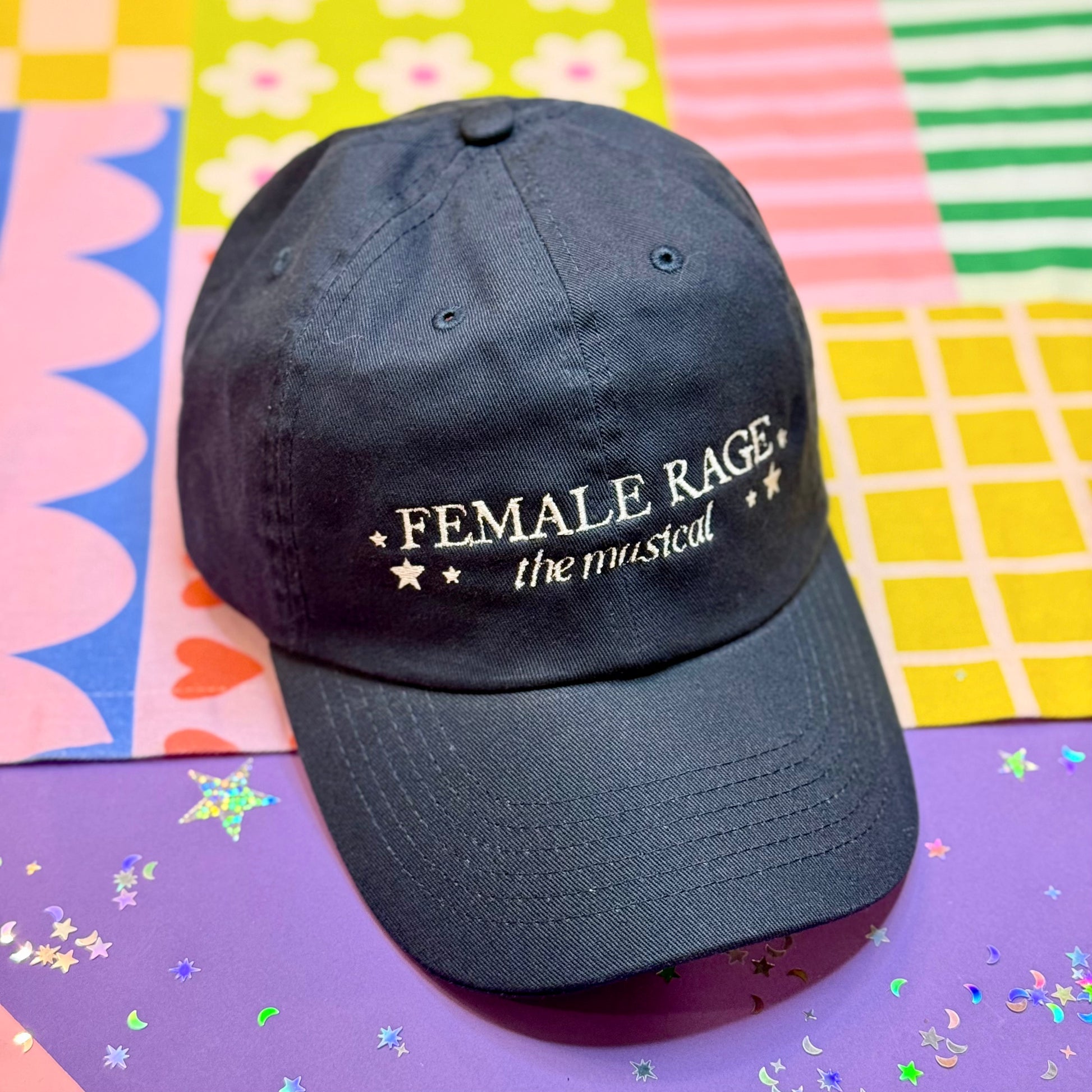 'Female Rage the musical' and stars embroidered on. relaxed fit Taylor Swift TTPD inspired hat. Brass slider on the back to adjust fit.