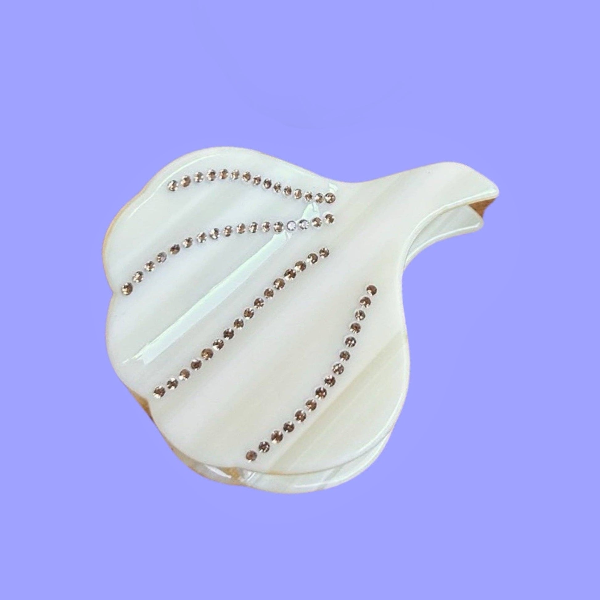 Calling all garlic fiends! The most glamorous garlic accessory is here for you! This garlic shaped hair claw has rhinestone details and is made of eco-friendly cellulose acetate.