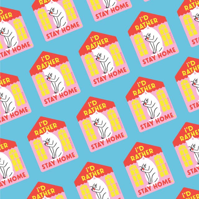 I'd Rather Stay Home Cat Sticker