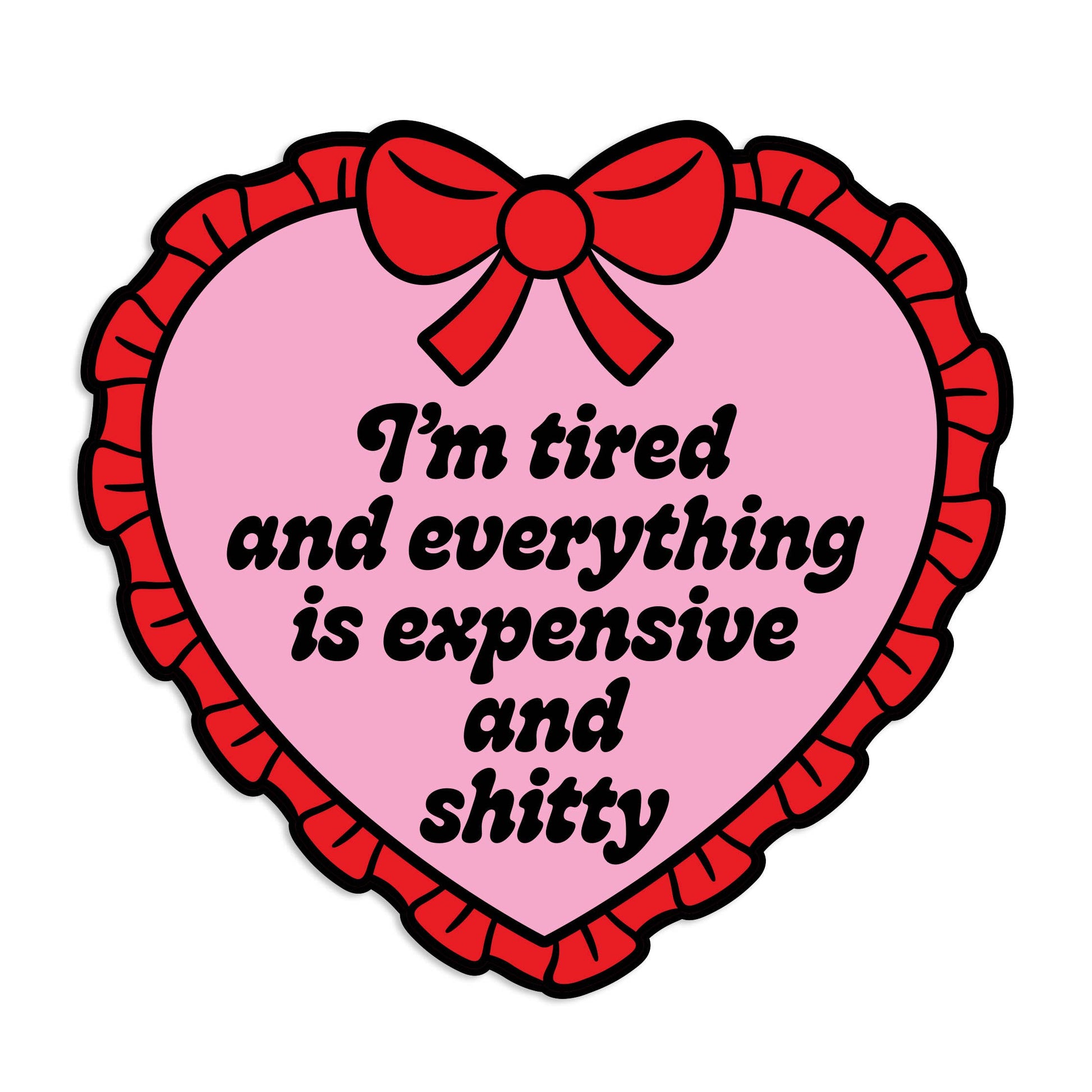 I'm Tired Everything Is Expensive And Shitty Heart Sticker