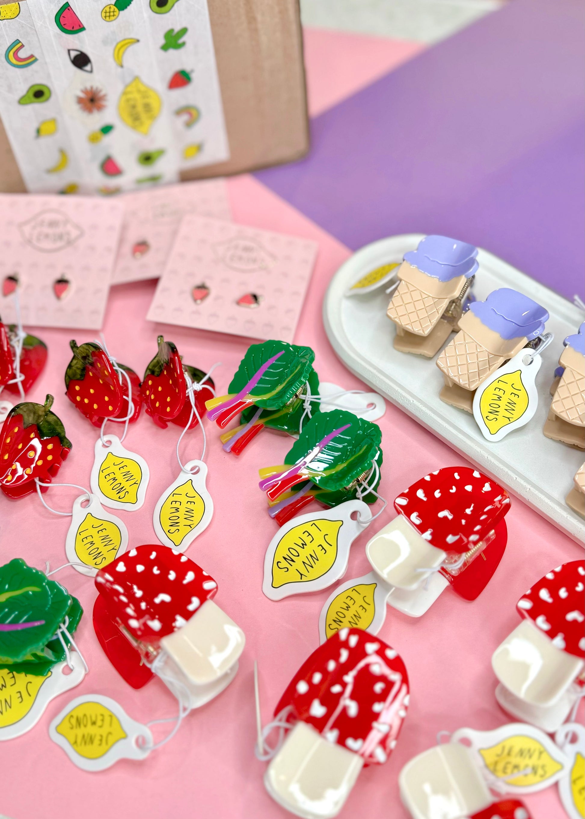 hand-painted 1.5” strawberry hair clip • made from cellulose acetate, a plant-based and biodegradable alternative to plastic! • designed in San Francisco, California by Jenny Lemons • ethically produced in China