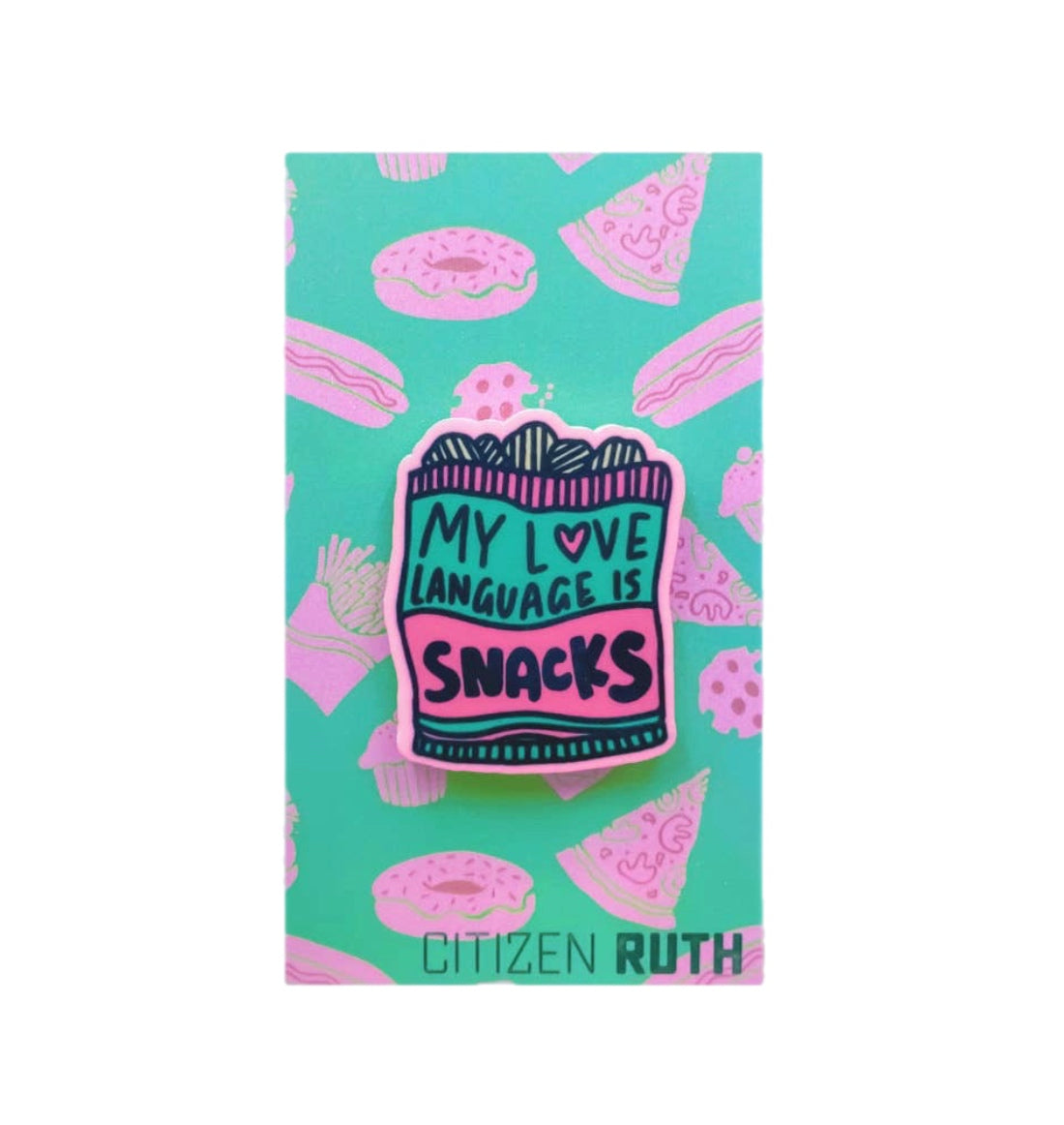 1.5” pin made from laser cut matte acrylic, sublimated in full color and die cut • clasp is stainless steel clutch with rubber backing