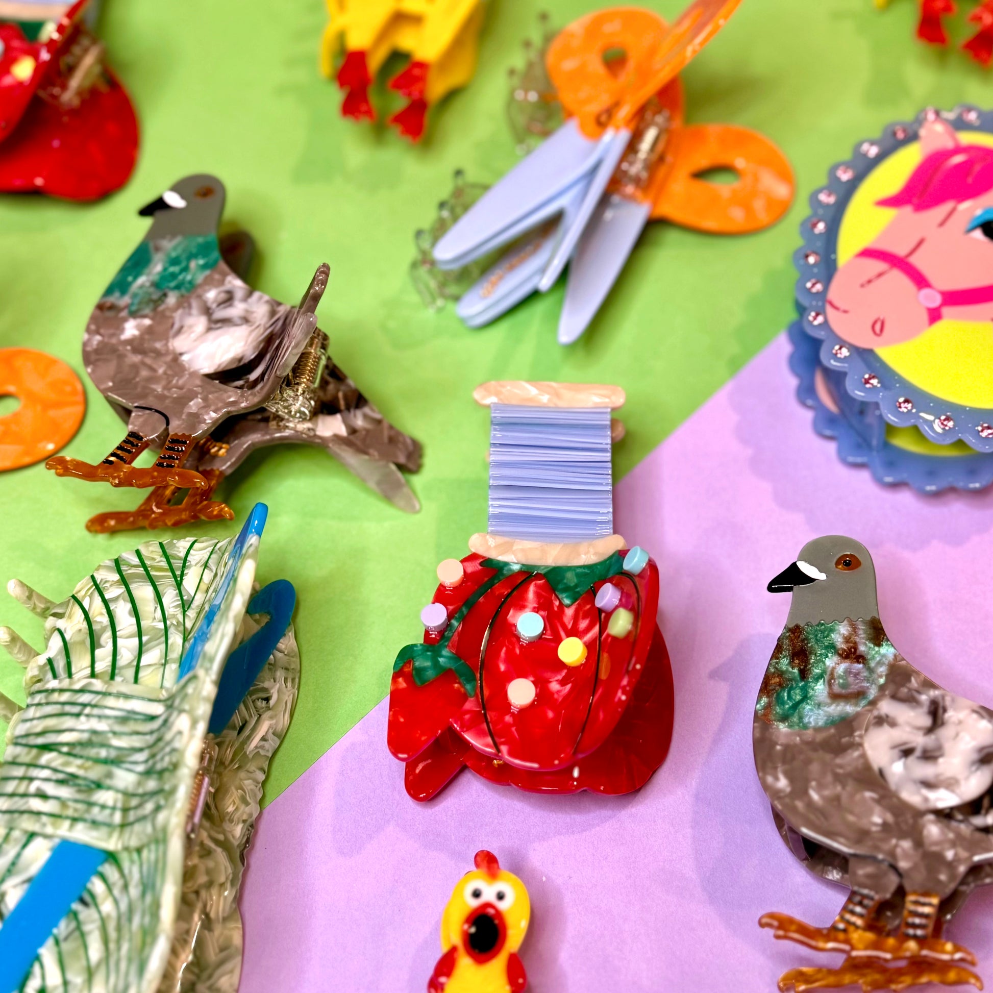 Measures 4 inches tall total, with claw part measuring 2.5 inches tall. Made of cellulose acetate (eco friendly!) Product testers have said this hair clip “does not budge” and “held all day” without pulling or being too tight. High quality. High hold. High camp. Love that for you.