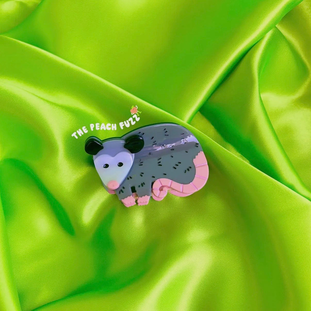 Add some sparkle to your hairstyle with our Possum Hair Claw, featuring a bedazzled opossum design. Keep your hair in place with a touch of whimsy and charm. Perfect for any animal lover.