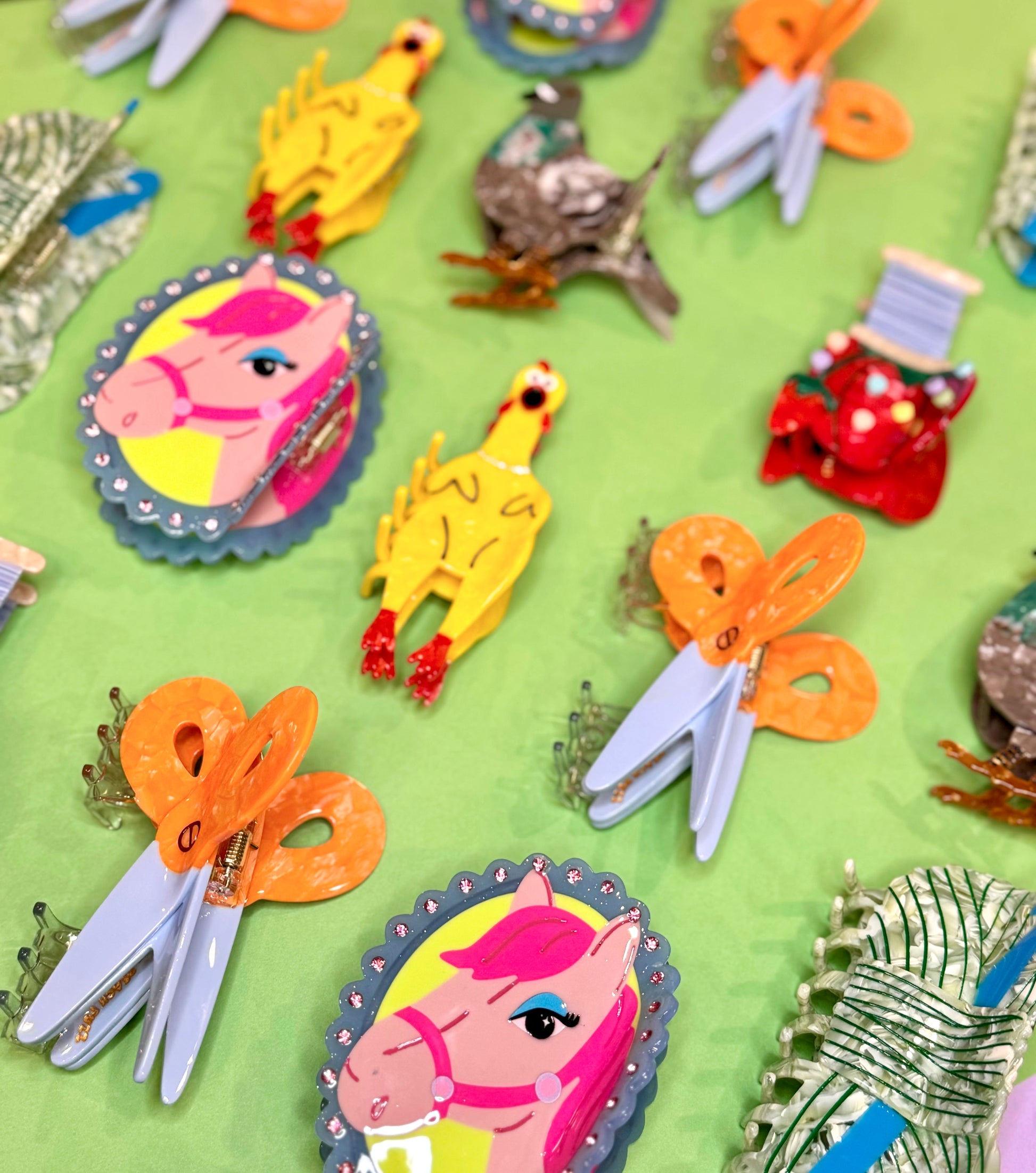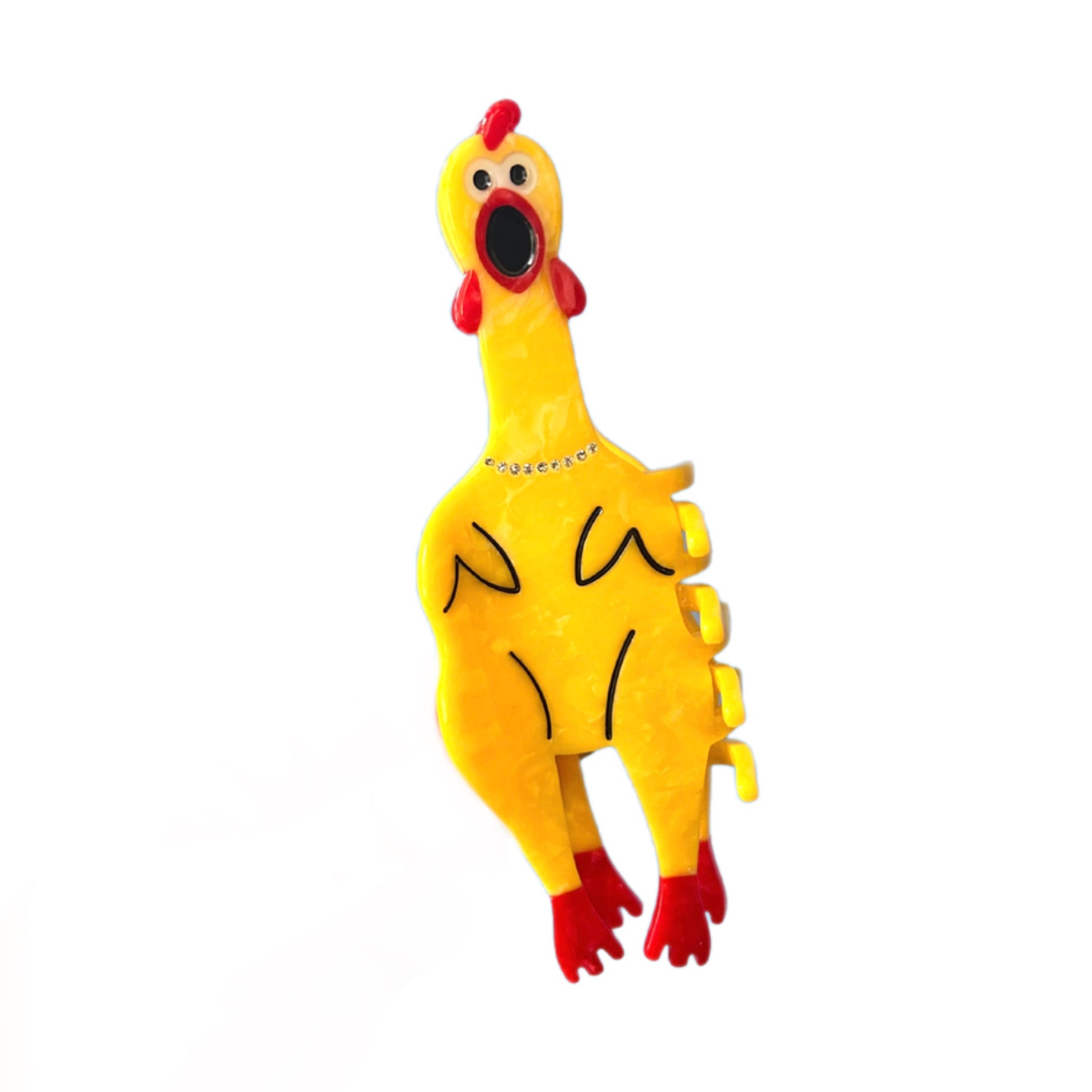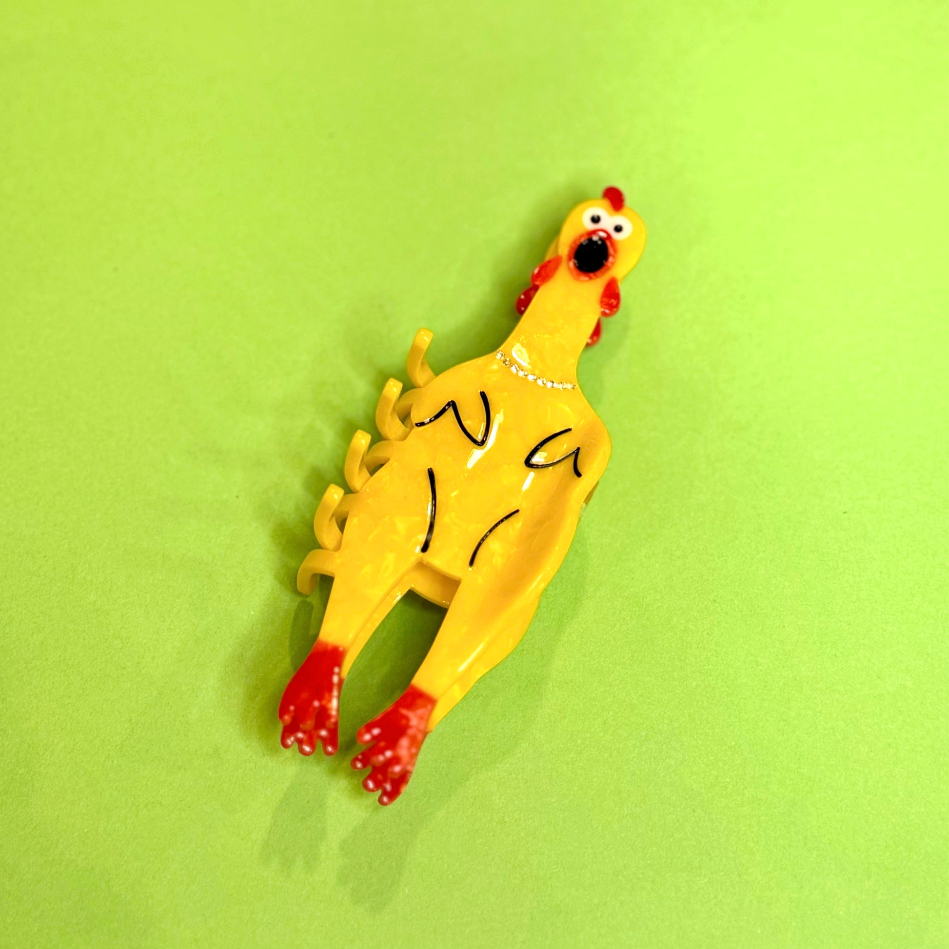 Chicken measures 12 cm tall (5 inches). Product testers have said this hair clip “does not budge” and “held all day” without pulling or being too tight. High quality. High hold. High camp. Love that for you. Original design perfected in San Francisco, CA.
