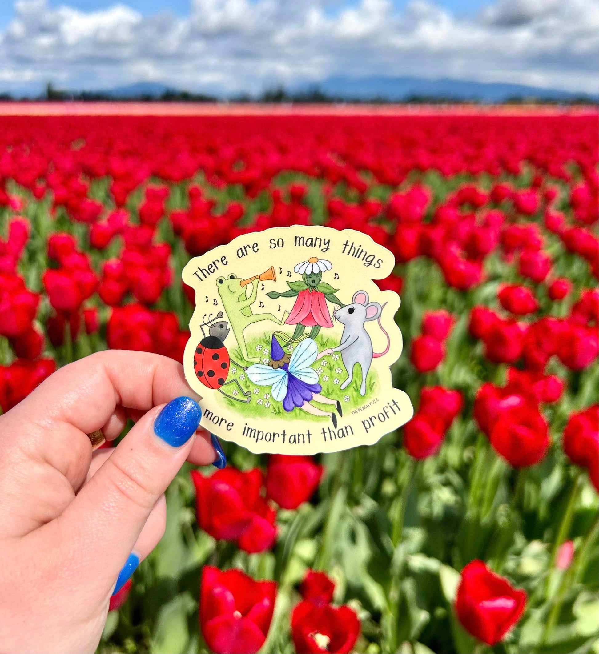 There are so many things in this life that are more important than short-term profits! Living under capitalism can make us blind to these treasures, but we fight back against that when we create community, art, music, and joy! Notice the world's beauty as often as you can. Appreciate the little moments. Harvest hope for a better future. And refuse to let them take that from you.