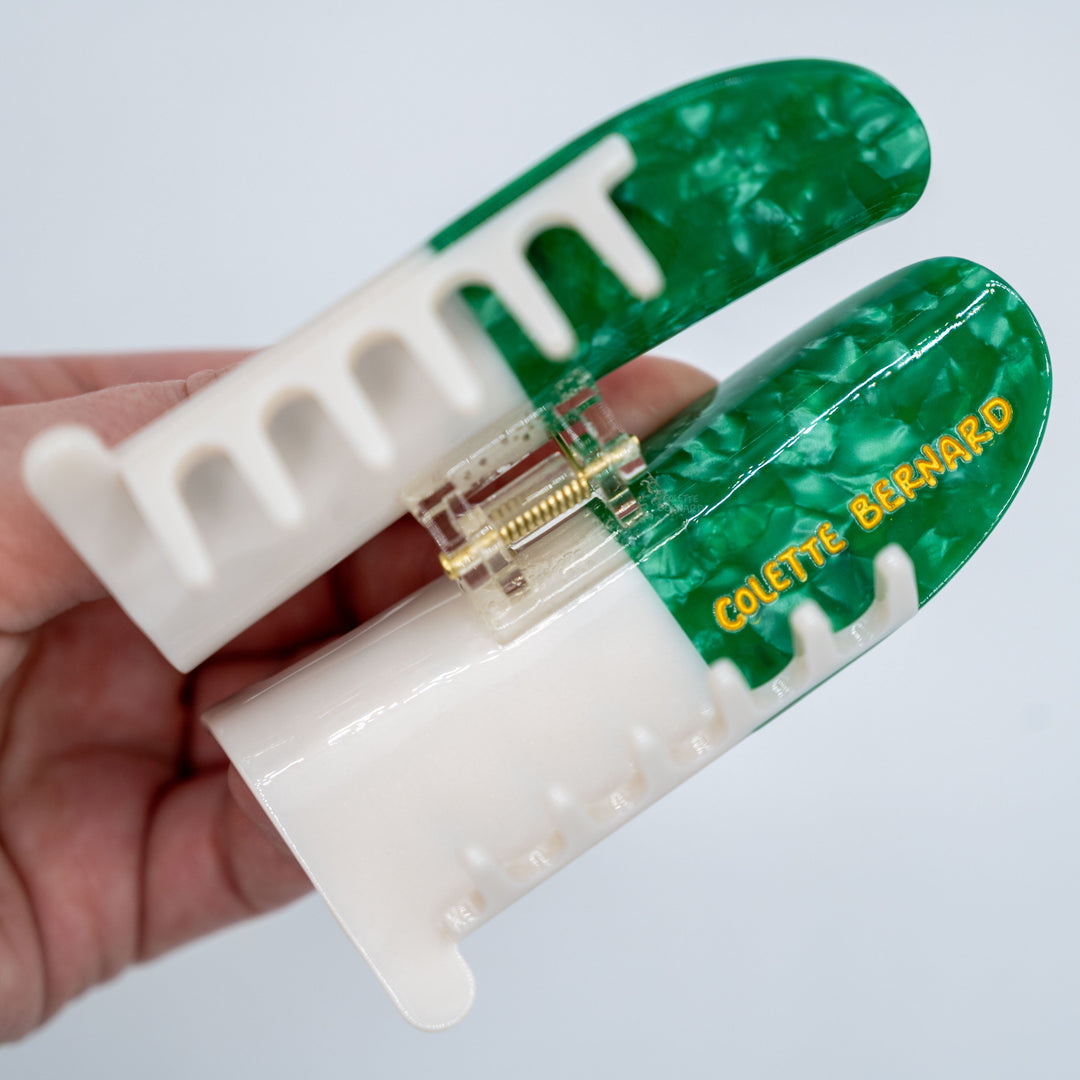 3” x 2” hair claw clip • made of bioacetate (a super strong, eco-friendly, petrol-free bio plastic!) • designed in Lafayette, Louisiana